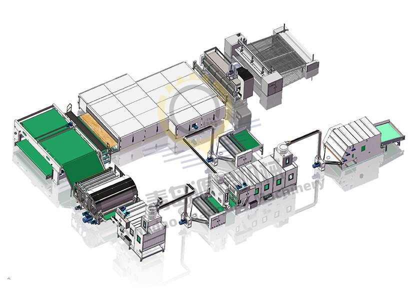 В индустрии переработки нетканых волокон метод термического скрепления на линии по производству ваты напрямую определяет объемность и физическую стабильность готового продукта. Благодаря использованию конфигурации с однослойной печью производственная линия точно превращает химические волокна плотностью от 1D до 25D в высококачественную мягкую вату толщиной от 50 до 80 мм. Этот процесс не только отвечает строгим требованиям к упругости для одежды и домашнего текстиля, но и демонстрирует превосходные инженерные преимущества в области энергоэффективности и простоты эксплуатации.